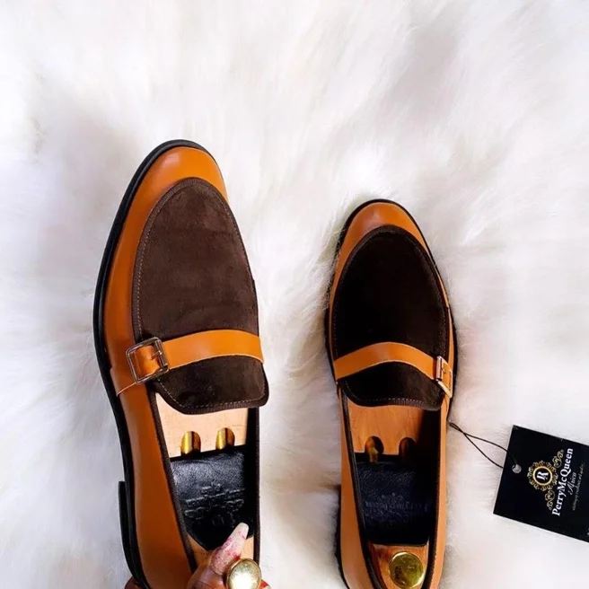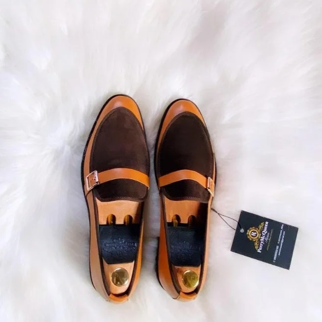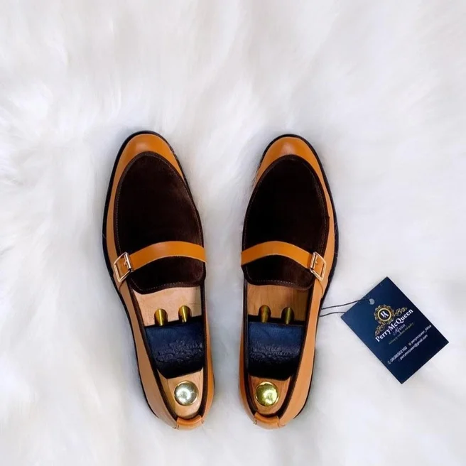 Brown cow skin leather with coffee brown suede shoe