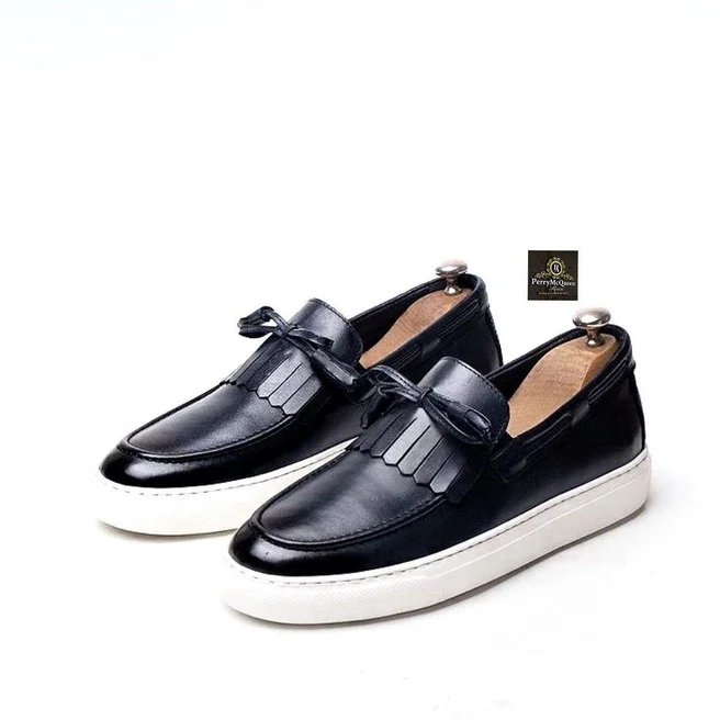 Black Leather loafers with fringe also in brown for men